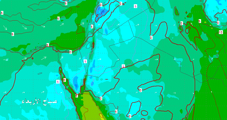 نلاحظ ايضا نشاط المنخفضات العلويه خلال الفتره القادمه على بلاد الشام والعراق والمملكه ..