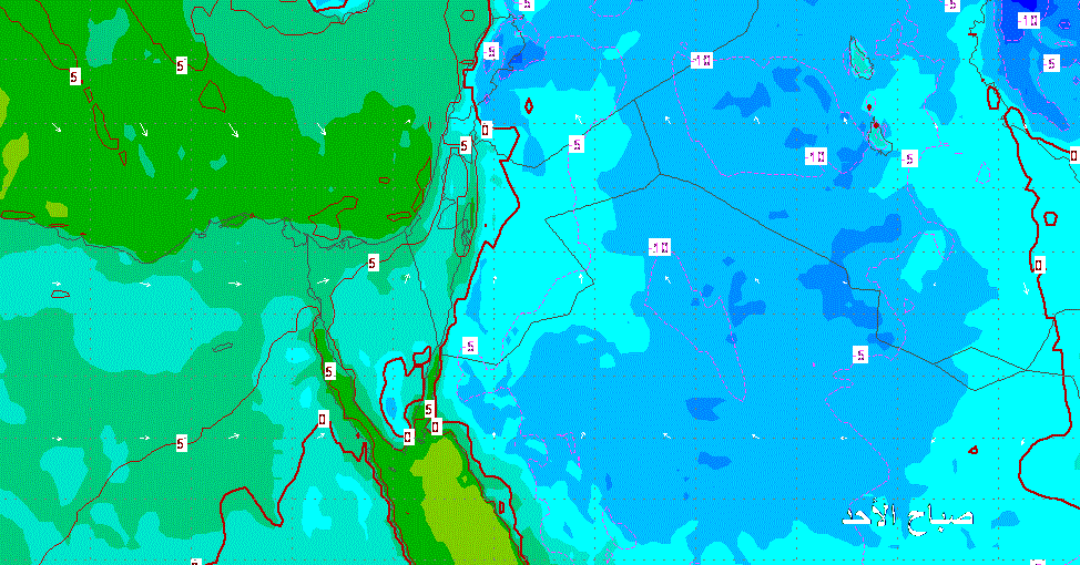 ونلاحظ الانخفاض الملحوظ بشكل كبير لدرجات الحراره لذلك ننبه من البروده المتوقعه خاصةً على بلاد الشام ومصر وتركيا والمملكه والعراق وتندفع لدول الخليج ولكن بشكل اقل ومع ذلك ننبه من الانخفاض الملحوظ والبروده المتوقعه وضرورة اللباس الشتوي الثقيل ..