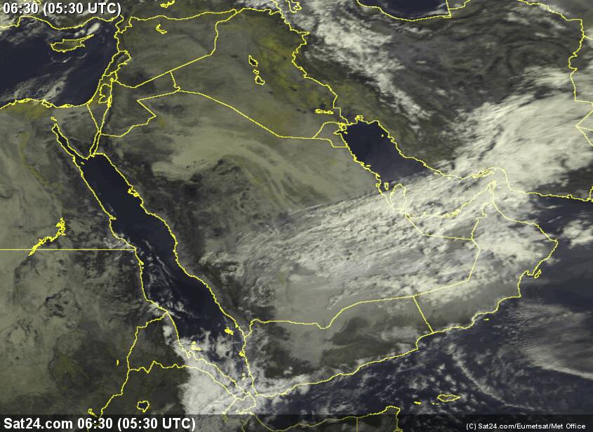 الأقمار توضح أنتشار السحب على قطر والإمارات وعمان مع أمطار متفاوتة