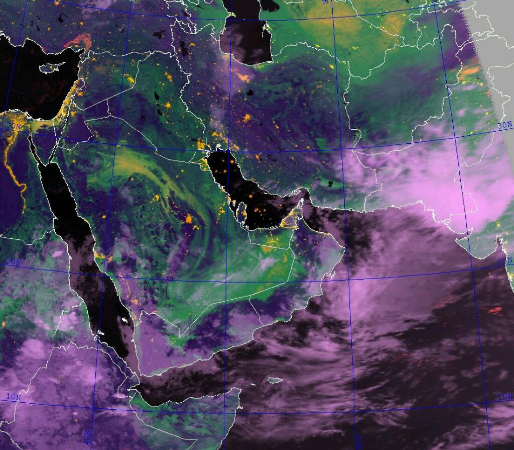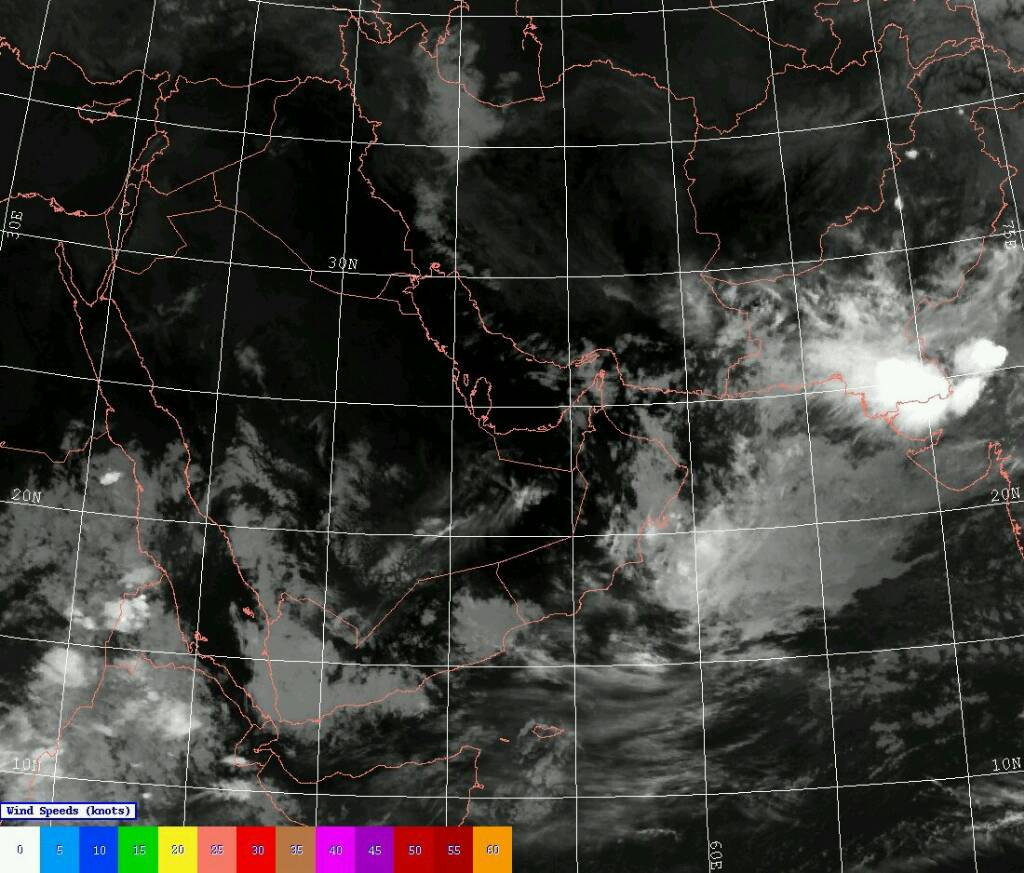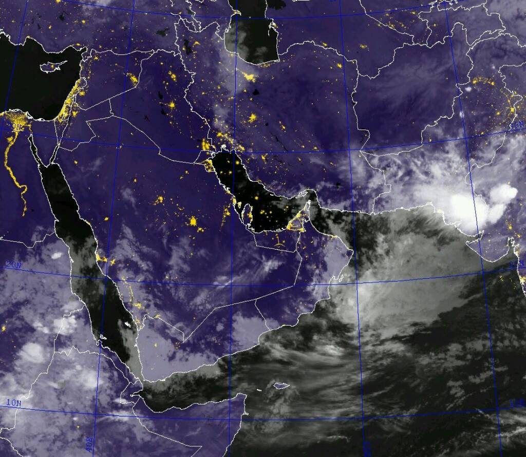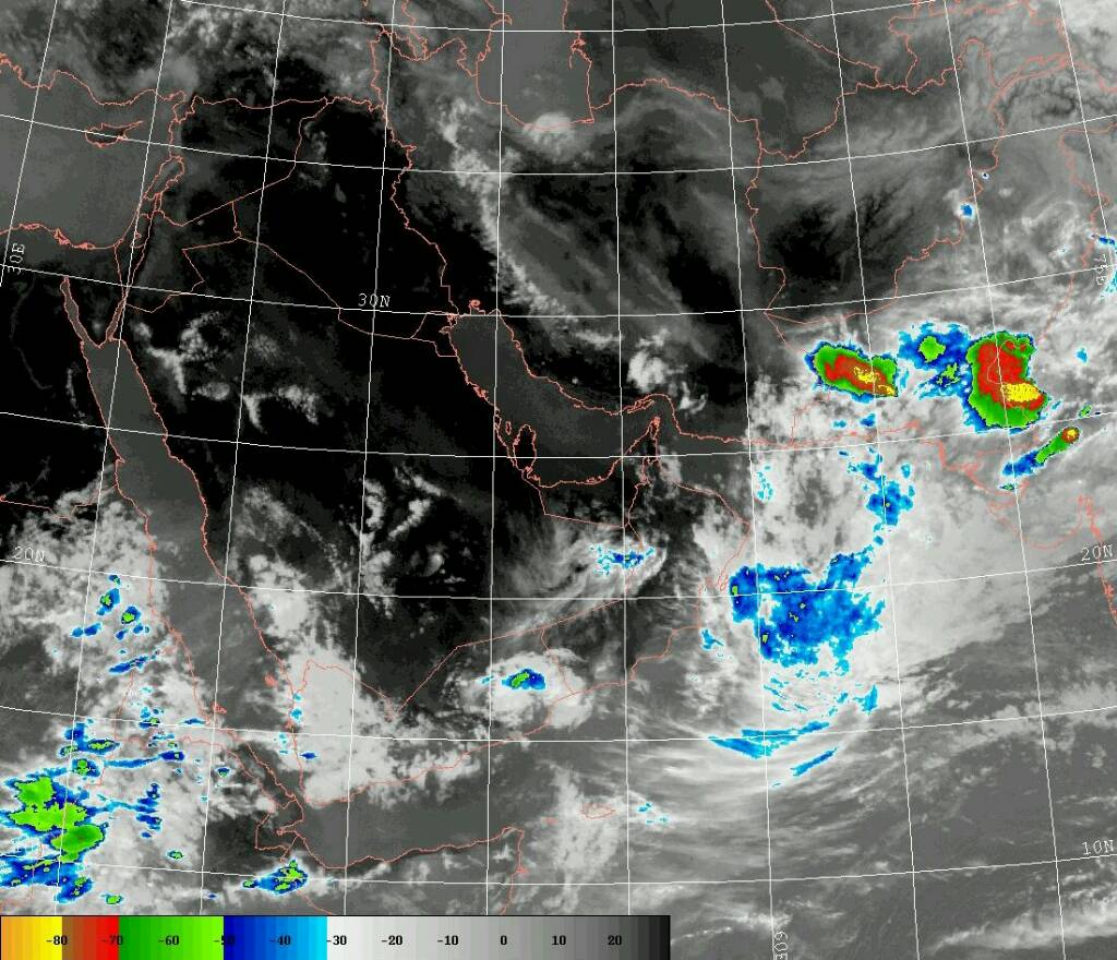 الأقمار توضح أستمرار تدفق السحب العالية على السلطنة من بحر العرب