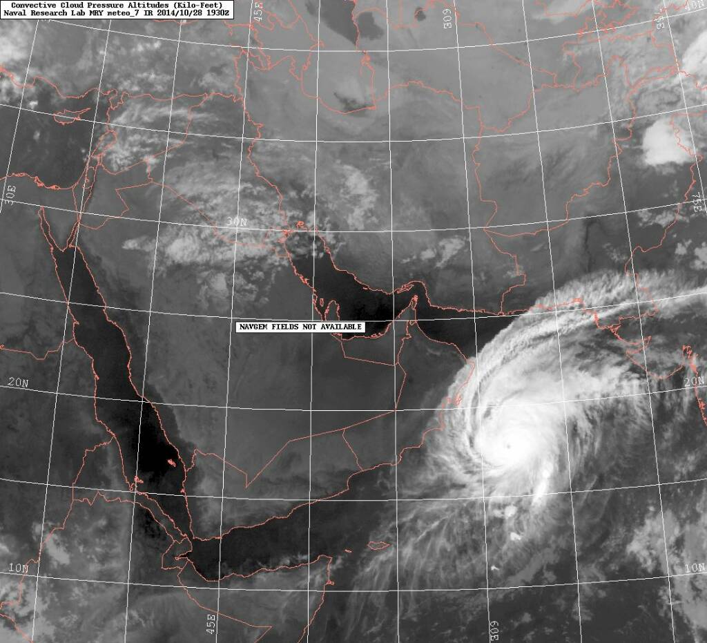 الموضوع: متابعة الإعصار المداري (نيلوفر Nilofar ) في بحر العرب 22/10/2014