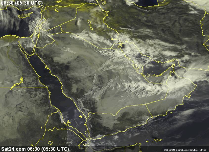 تشير اخر المعطيات الرقمية الى احتمال تاثر اجواء شبة الجزيرة العربية بحالة من عدم الاستقرار في الغلاف الجوي ناتجة من تمدد اخدود لمنخفض جوي ضحل . يرافق الحالة دعم بالابخرة والرطوبة المتوافرة على الطبقات البنائية للسحب .