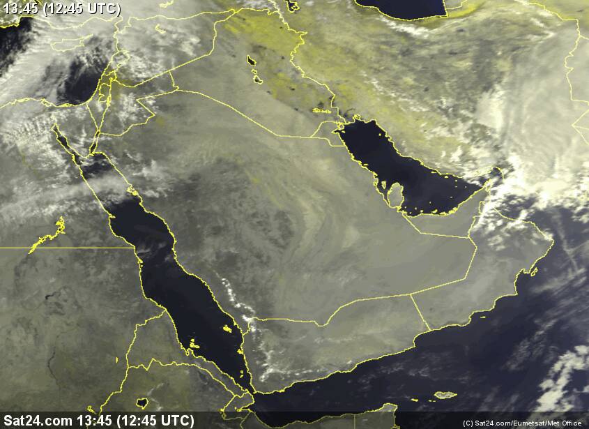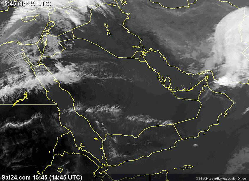 النشاط الرعدي كما يظهر بالصورة يتركز على الأراضي الإيرانية ويمتد حتى بحر عمان