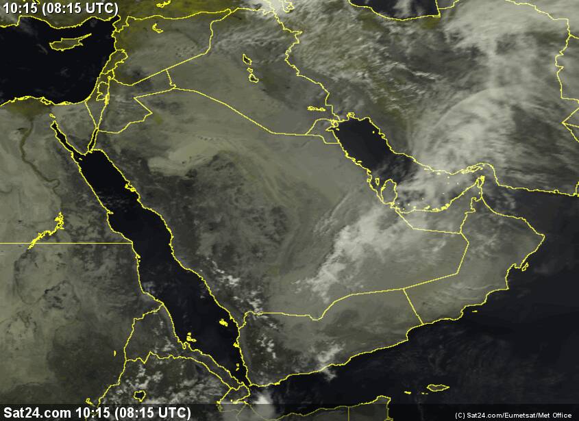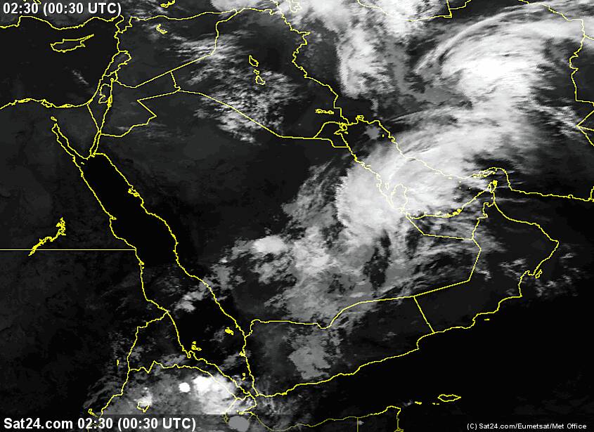 صور الاقمار واضح انتشار جيد للسحب على المملكة مع تدفق السحب على السلطنة.