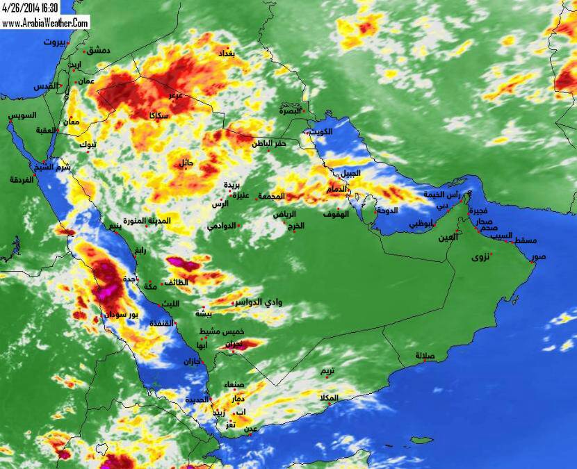 رد: متابعة احوال الطقس على السلطنة ودول الخليج والوطن العربي خلال النصف الثاني من شهر أبريل من العام 2014