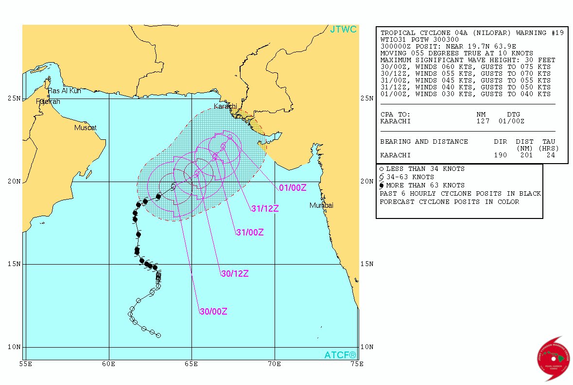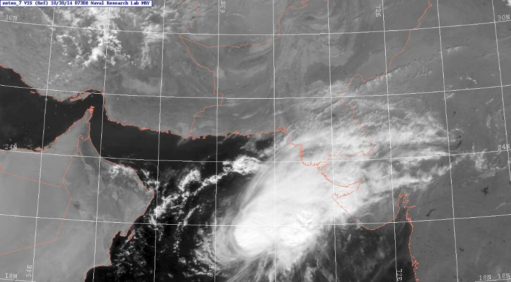 رد: متابعة الإعصار المداري (نيلوفر Nilofar ) في بحر العرب 22/10/2014