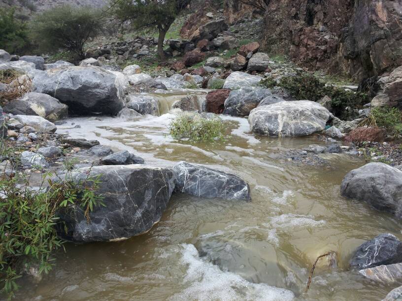 الحمدلله الوادي نازل من جبال ينقل وتعدا الظويهريه التابعه لولايه ضنك ويواصل طريقه الان لوادي فدا