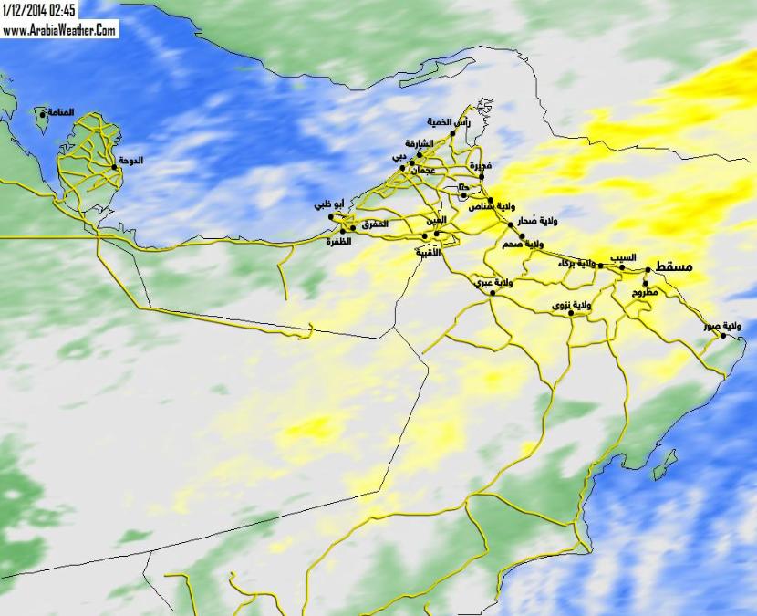 الامطار معنا ديمه كانت خفيفه واحيانا متوسطه من منتصف الليل والان توقف والسحب ضعف/صحار
