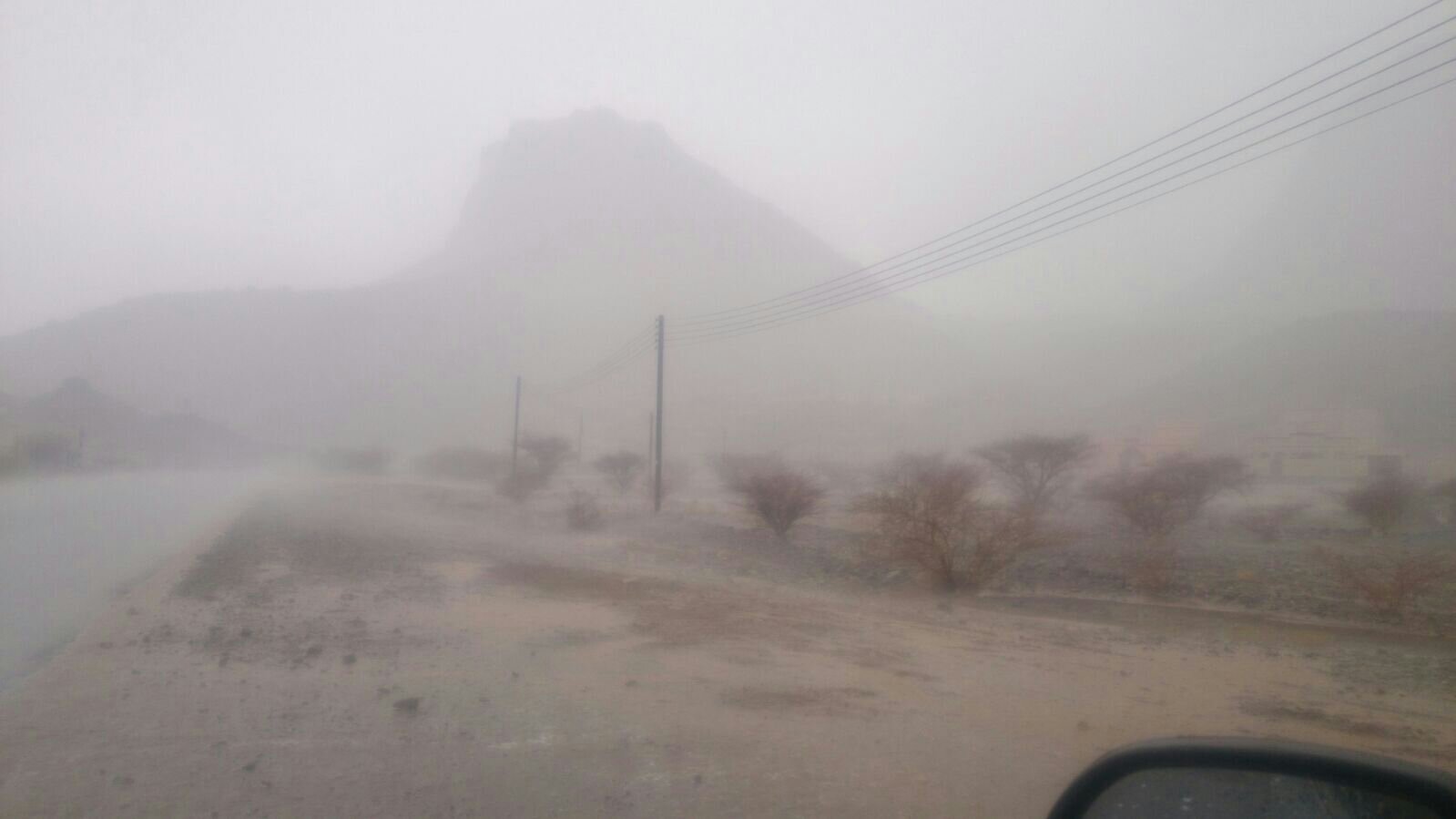 بداية امطار قوية على جبل الحجر المطله على وادي العين