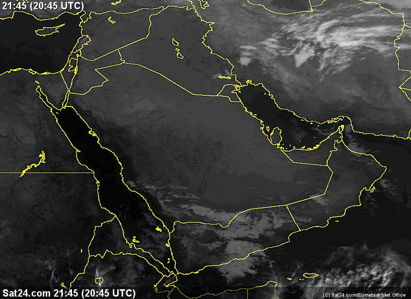 صور الاقمار الصناعيه توضح بدايه تكاثف سحب الطبقيه ع بحر عمان