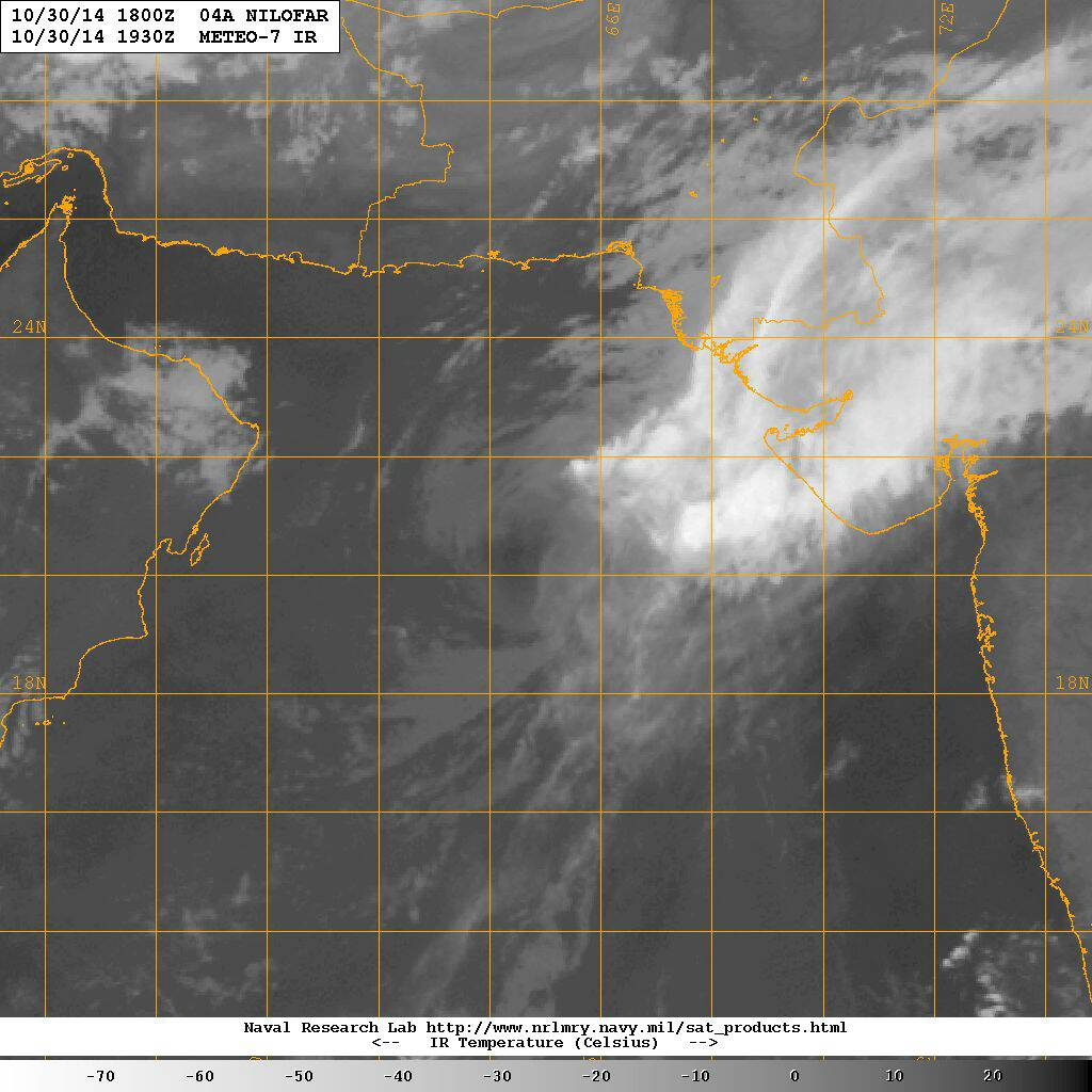 رد: متابعة الإعصار المداري (نيلوفر Nilofar ) في بحر العرب 22/10/2014