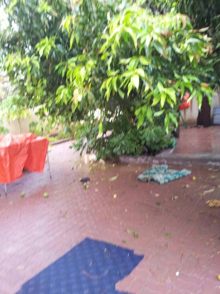 آثار العواصف والامطار الغزيرة على الحمراء اقتلاع الاشجار والمانجو
