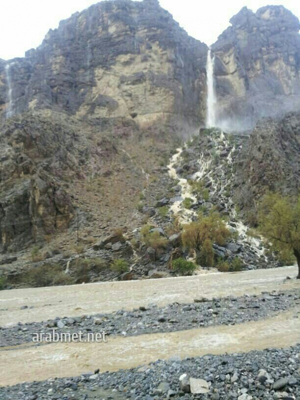 شاهد أمطار وشلالات وادي بني خروص بولاية العوابي 14-7-2015
