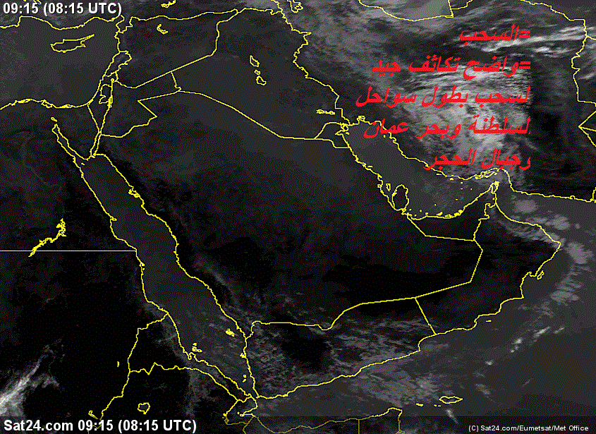 أستمرار تواجد السحب المنخفضة والمتوسطة على سواحل مسقط والباطنة ومسندم