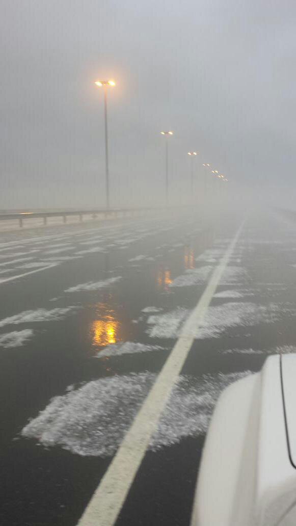 ‏#الإمارات: امطار غزيرة وبرد كثيف طريق العجبان في العاصمة ابوظبي #منخفض_تراحموا بعدسة بو حمدان #مركز_العاصفة