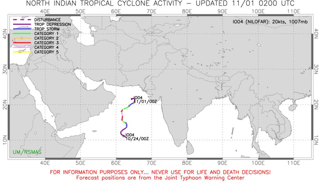 الموضوع: متابعة الإعصار المداري (نيلوفر Nilofar ) في بحر العرب 22/10/2014