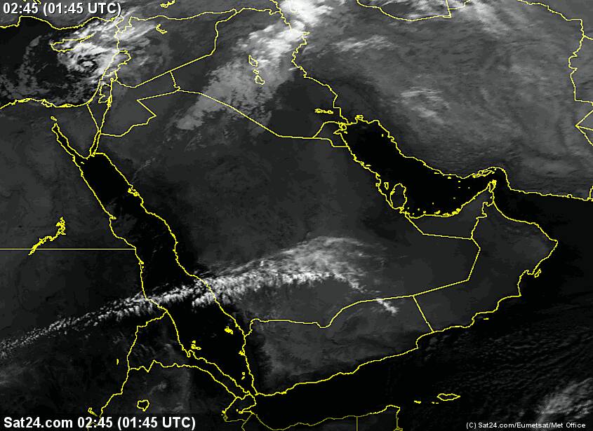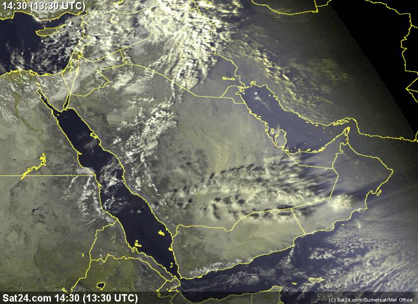 منخفض جوي يؤثر على العراق و إيران واجزاء من المملكه والكويت يتوقع ازدياد رقعة السحب الركاميه الماطرة بقادم الوقت وتشمل المنطقه الشرقيه للمملكه وتمتد لاجزاء من قطر ومملكة البحرين وسواحل دولة الامارات ومسندم خلال اليومين القادمين .. أسباب ضعف تأثر السلطنة والإمارات بالحالة الجوية يرجع إلى الوضع السطحي وضعف الرطوبة العلويه وكذلك وجود ضغط جوي مرتفع على الطبقات المتوسطه ..