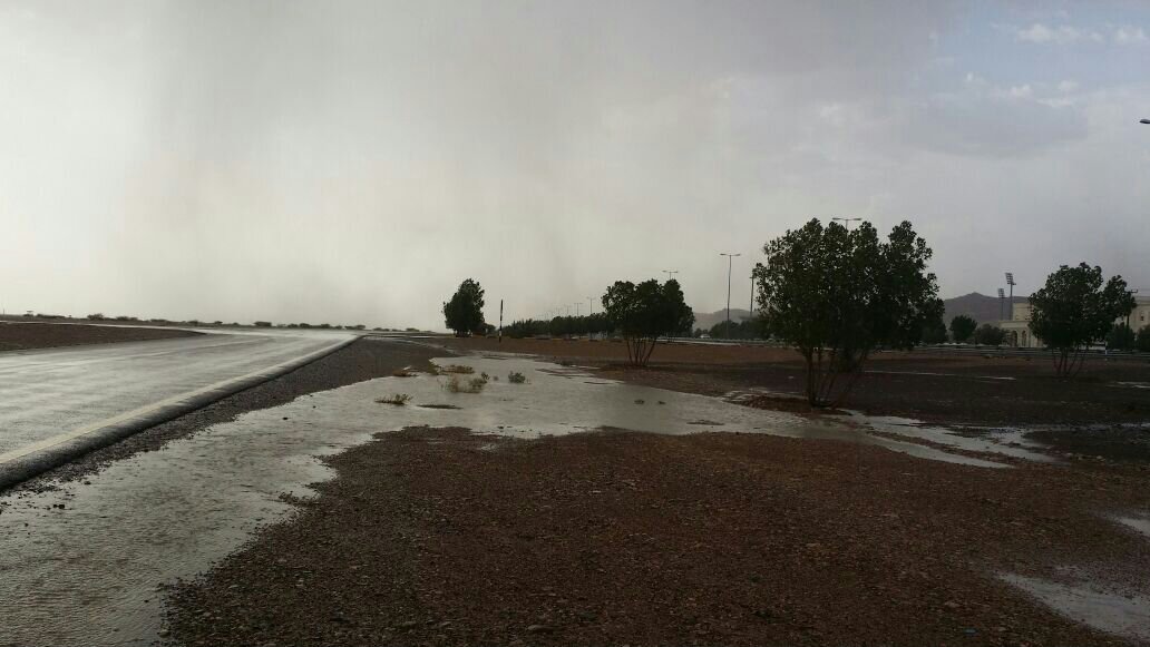 ولله الحمد تجدد هطول المطر اليوم في قرية النصيب والعلاية بولاية إبراء قمنا بضربة إستباقية بعد مشاهدتنا للخلية الماطرة وصلنا العلاية فإذا بقطرات المطر تهطل هطول متوسط بحبات كبيرة كلها ثواني سالت الشعاب على جانبي الطريق وتجمعت المياة وكان المطر يرسم لوحات جمالية أثناء الهطول وتسلط أشعة الشمس عليه لقد كان الهطول سريع والخير وفير لو مكثت الخلية فترة أطول لكانت المياة تملأ المكان بعد ذلك تبددت الخلية وتلاشت نعم أمطار خير ورحمة يجب أن يرافقها الثناء والشكر للمولى عز وجل على ما أسبغ من نعمائه وتفضل وجاد بالخيرات من أعالي سماءه