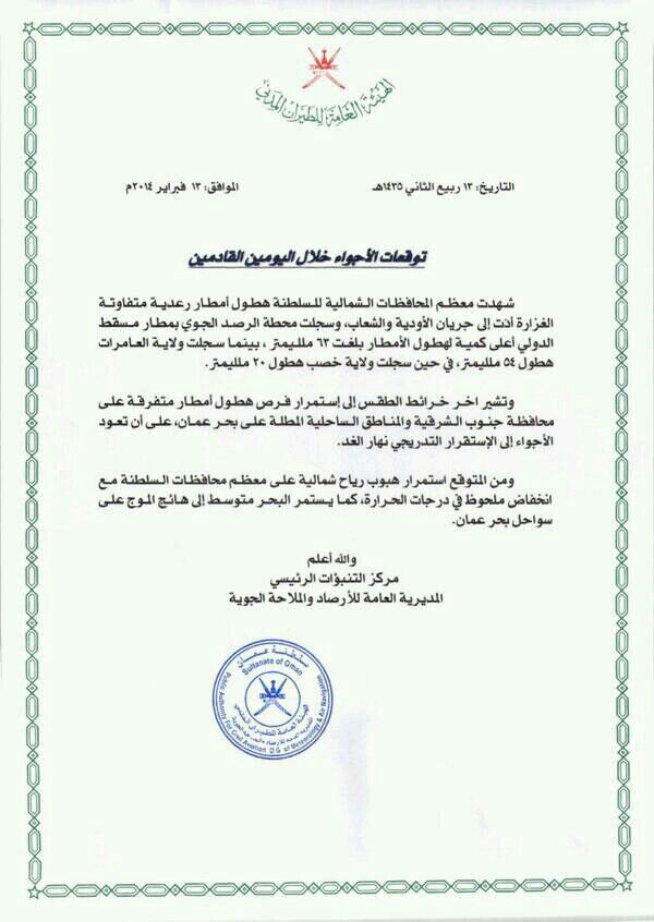 رد: متابعة أحوال الطقس على السلطنة ودول الخليج والوطن العربي خلال أول شهر فبراير من العام 2014م